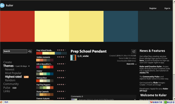 不錯用的配色網站,上面別人配好的顏色,也可以自己配色,如果你有Adobe ID,還可以把配色存在網站。
